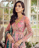Our most sought after design, 'Jolie' is flared front open gown with exquisite embroidery and handwork. It is paired with a lush pink printed kathan silk sharara, styled with a minutely detailed hand screen printed dupatta and is finished with contrasting teal borders. Embroidered Shirt fabric 4 Yards |