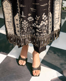 This black outfit comes with gorgeous tilla with beige Resham floral stitch work. The embroidered Daman and sleeves are adorned with laser-cut giving it a modern look. Accompanied with an embroidered laser-cut dupatta and viscose pants. This feminine design is perfect for daytime as well as nighttime festivity.