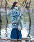 Includes: Shirt, Trouser and DupattaAltan' The fervent valley where the mountains meet the sky and winter sun fades away in the cold deserted lands. The trees, fruits, and flowers along the bank of chilly rivers get pale and red, is the allure of the snowy shigar. The two-colored karandi outfit in teal and aqua with the adornment of kantha, gara, and satin stitches make it all unique. The velvet shawl is coarse enough to keep you warm in winters.